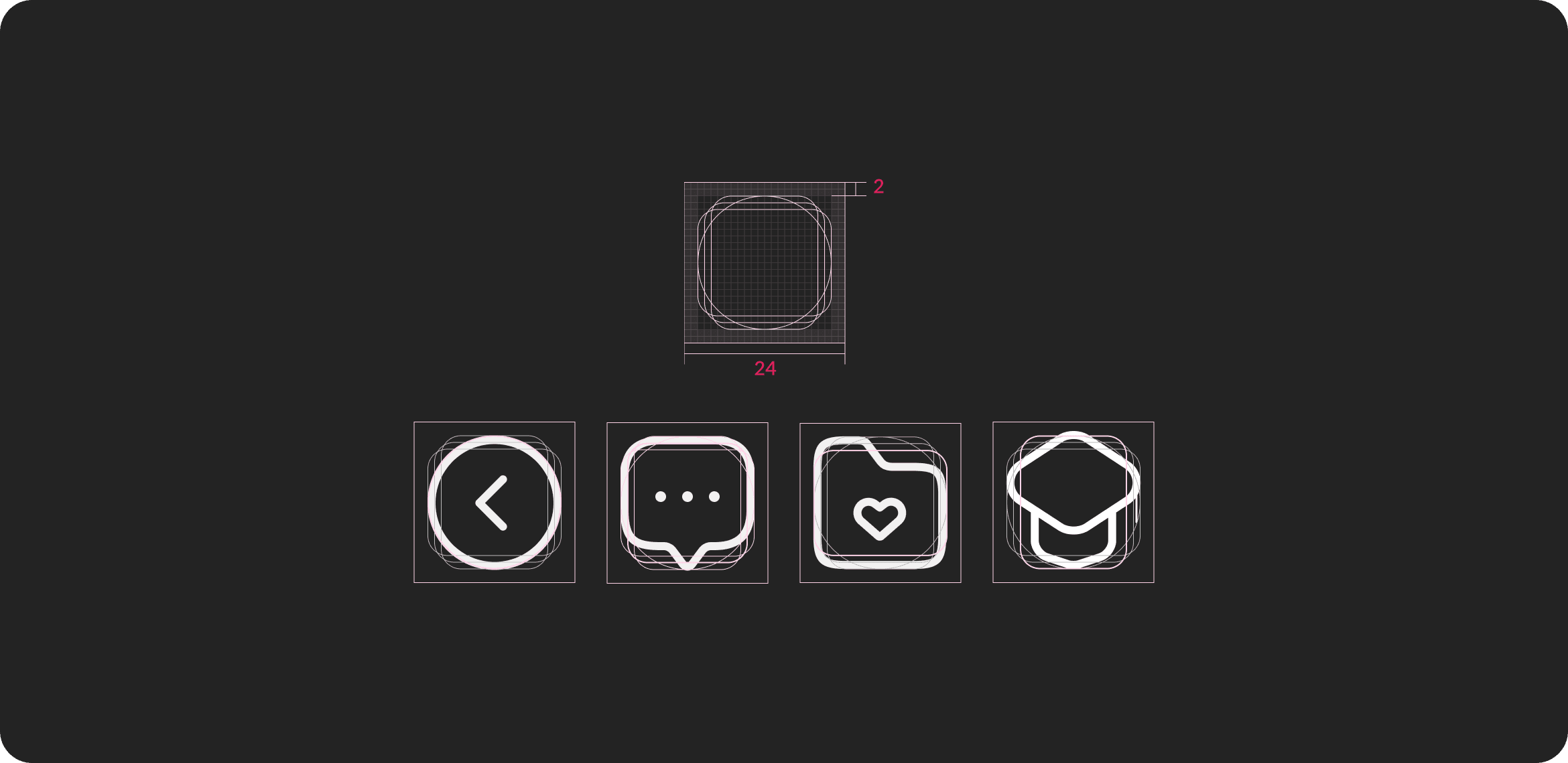 • Corner radius: consistent across all icons
